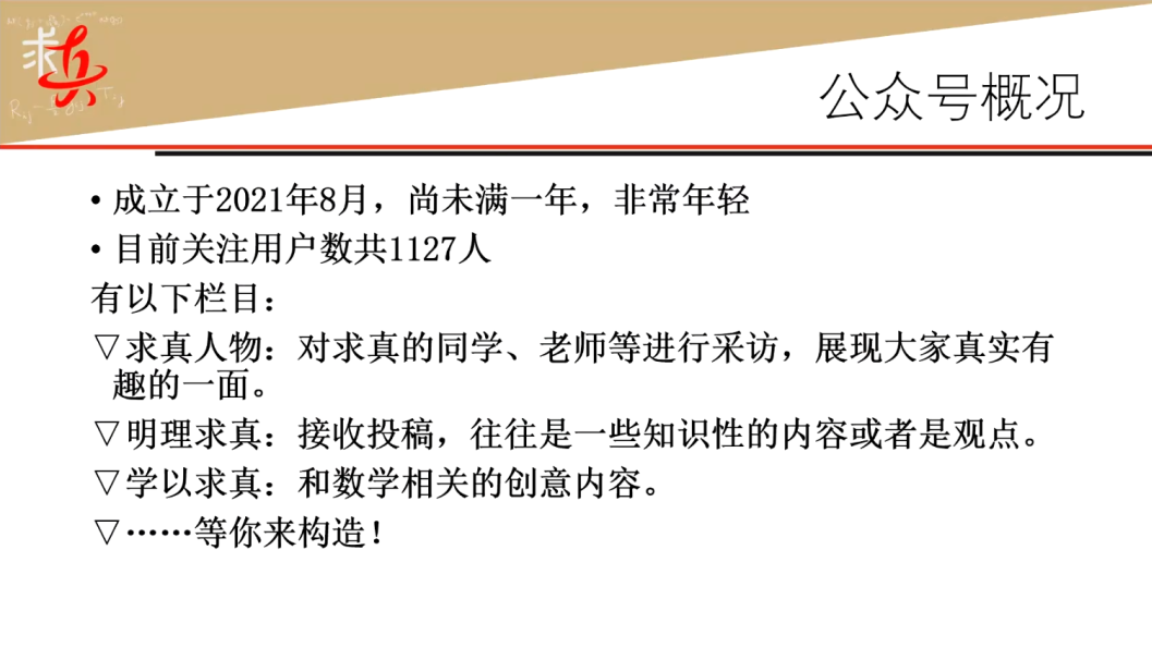 常务性工作:生权周报,公众号“求小真“,生日门贴,活动室管理。