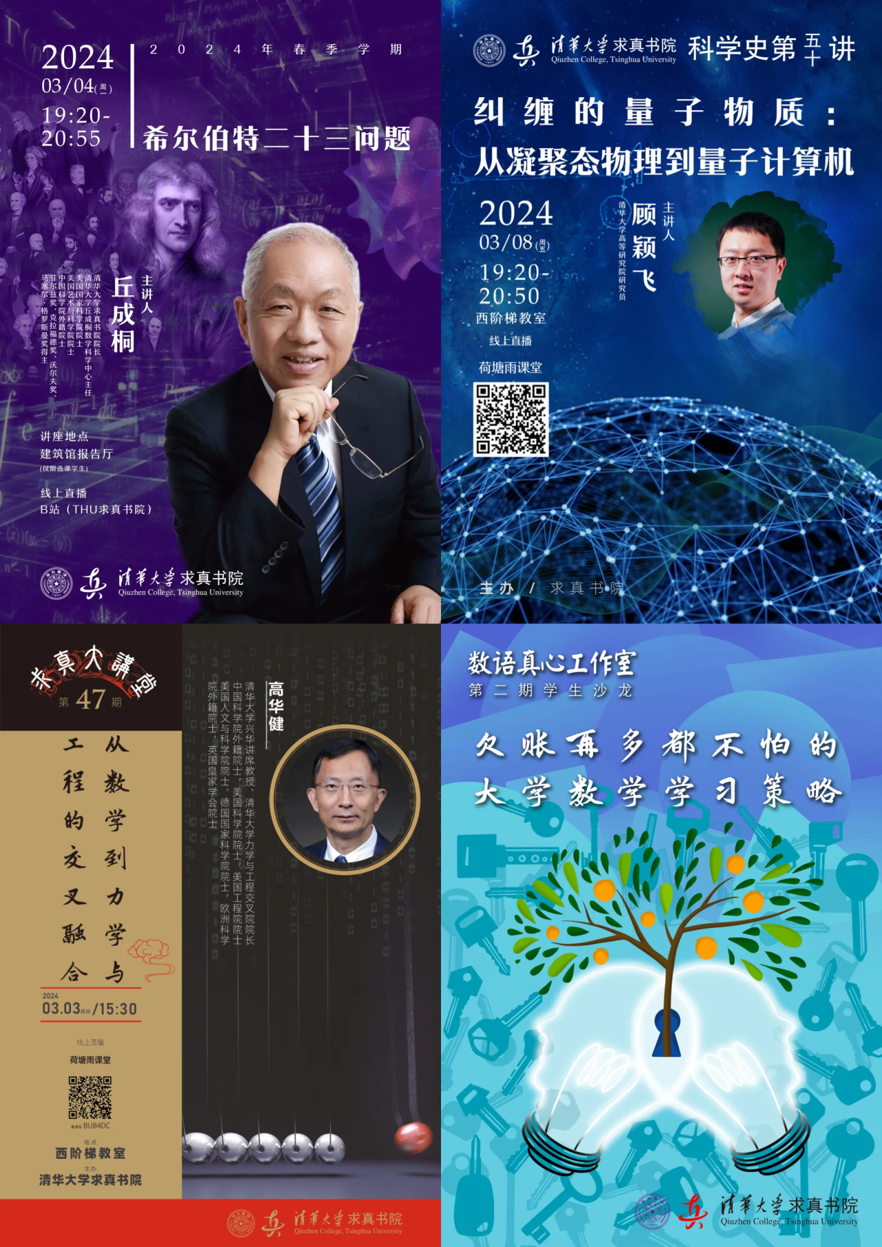 共组织数学史讲座8次,求真大讲堂6次,科学史讲座4次,叶承耀·叶家祺冠名讲座3场,数语真心沙龙2次,求真游目讲座1次,诺特讲座1次,曲阜数学大师对话1次。