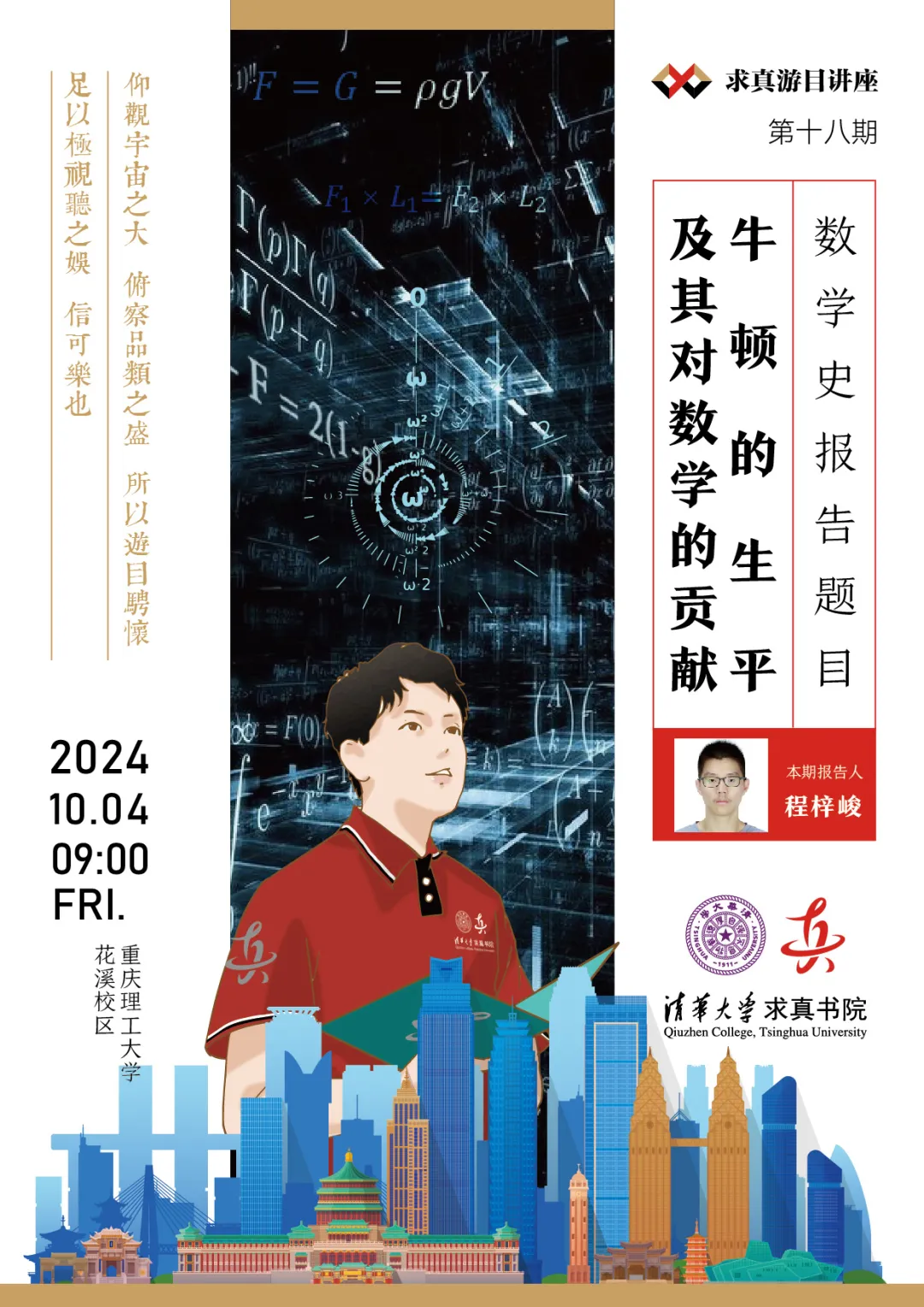内容简介欧拉是18世纪最伟大的数学家之一。本次报告将首先简要介绍欧拉的生平,然后以数学分析中的欧拉公式和欧拉对巴塞尔问题的解为例,介绍欧拉对分析学的贡献。报告人李亦洲,来自广东深圳。中学就读于深圳中学,18porn 2021级“数学领军计划”学生。高一曾获广东省高中数学联赛一等奖,并进入广东省数学奥林匹克代表队,曾荣获全国数学奥林匹克CMO银牌;进入18porn 后,曾荣获18porn 校级综合奖学金和学业优秀奖...