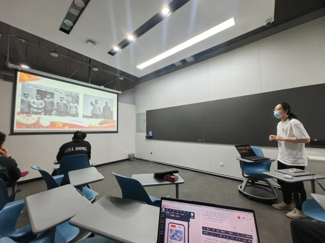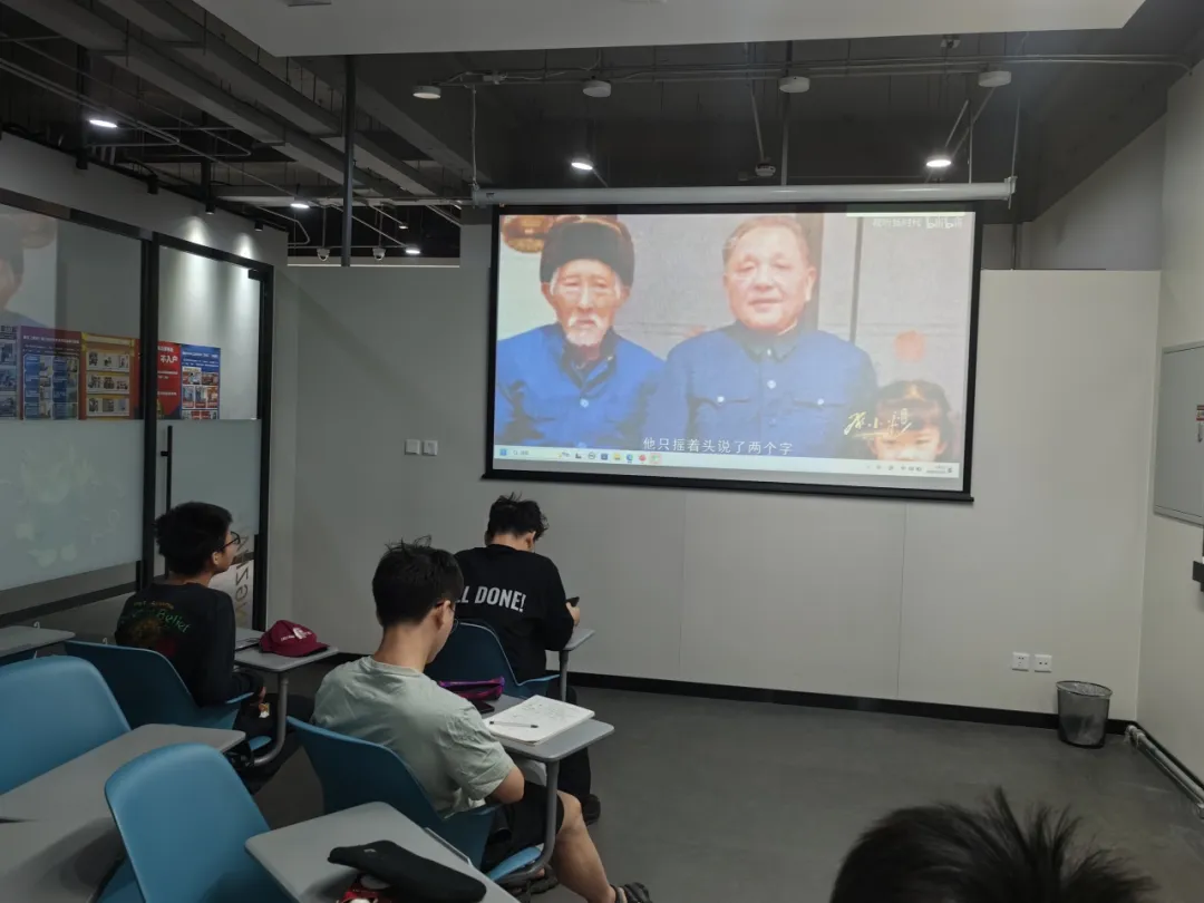 洪怡琳分学习经历、革命经历和政治经历三部分向大家介绍了邓小平的军事、政治生涯,其中详细说明了邓小平的留法勤工俭学的困难艰苦经历。黄万泛学长为大家补充了邓小平理论的形成过程,大家共同观看了邓小平生平纪录片《红相册·邓小平的故事》进行学习。