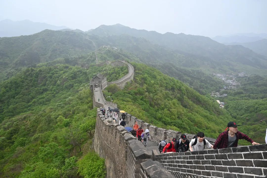 五月五日晨,至慕田峪长城,其势险峻峥嵘,起伏连绵,如巨龙飞腾。登临城墙,见古迹、赏胜景,一览无余。雨势渐厉,疾升陡降,能见登高之不易;敌楼威严,城墙厚重,皆显历史沧桑。午后,登雁栖岛,习量子理论,探物理奥秘。幸观雁栖会址,看大国担当,丝路盛况。长城之庞大,量子之微妙,皆见于此日。昔九州之盛世,在古人之智慧;今中华欲复兴,为吾辈之责任。
