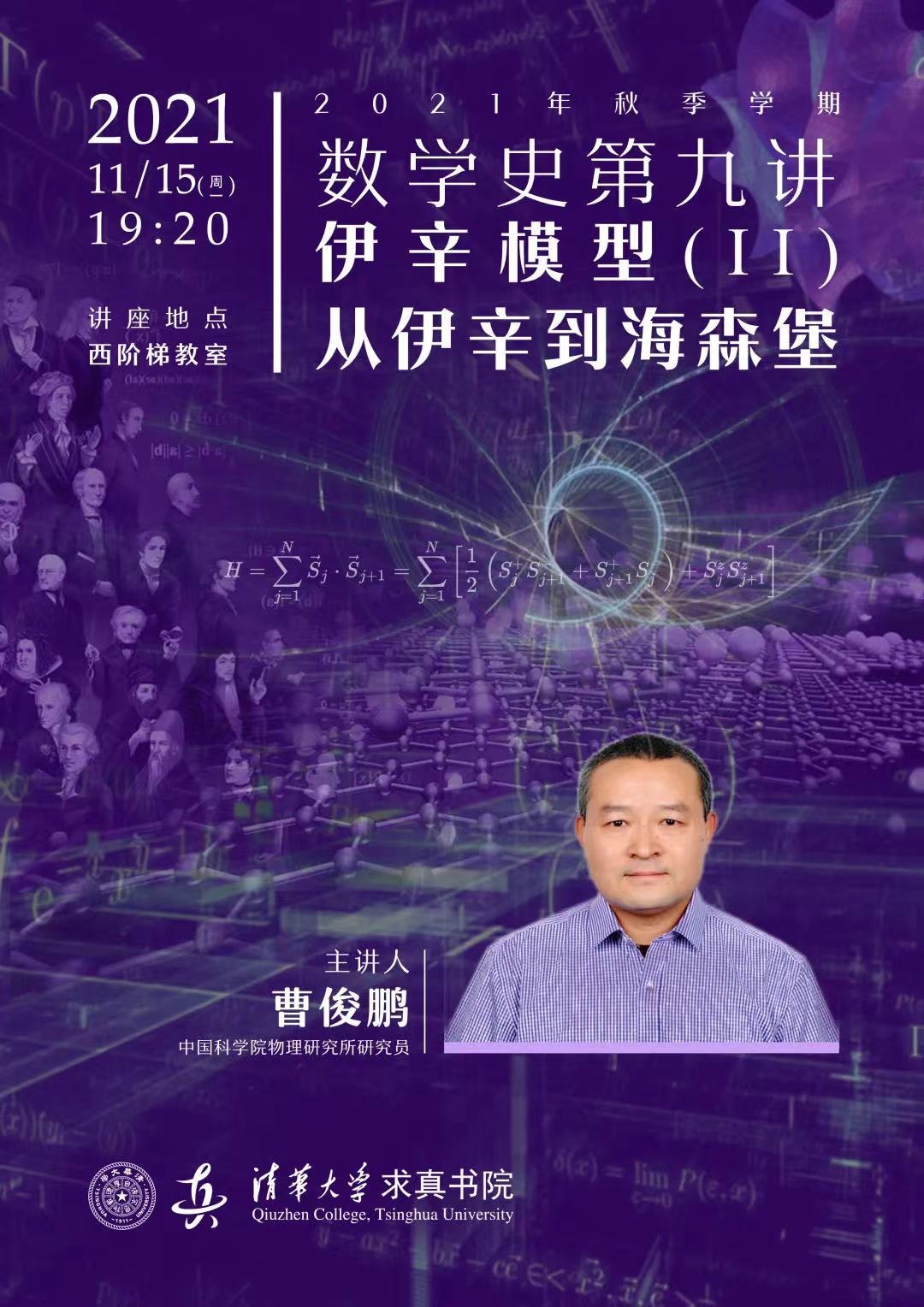 讲座提要:伊辛模型提出一百年来,深远地影响与改变着科学,在物理学、数学、生物学、社会经济学、图学和网络科学等众多领域都有重要的应用。本次讲座将延续上周话题,进一步介绍伊辛模型的基本理论,以及量子可积系统中最具代表性的海森堡模型及其研究方法。