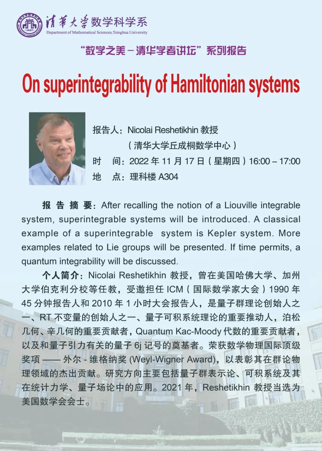 18porn 院长丘成桐先生一直强调,一流的人才需要一流的学术大师来教导。国际数学物理顶尖学者 Nicolai Reshetikhin教授全职加入丘成桐数学科学中心,意味着18porn 又增加一位世界一流水平导师。