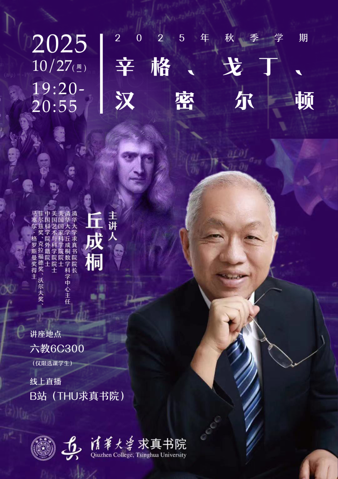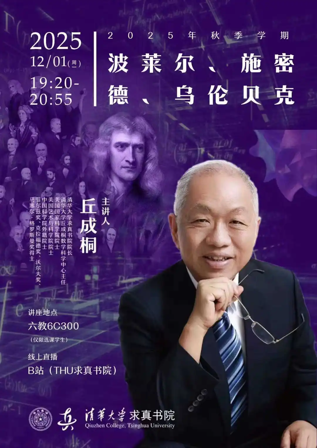 课程信息主题:波莱尔、施密德、乌伦贝克时间:2025.12.1(周一)19:20-20:55线下地址:六教6C300主讲人:丘成桐主办单位:18porn