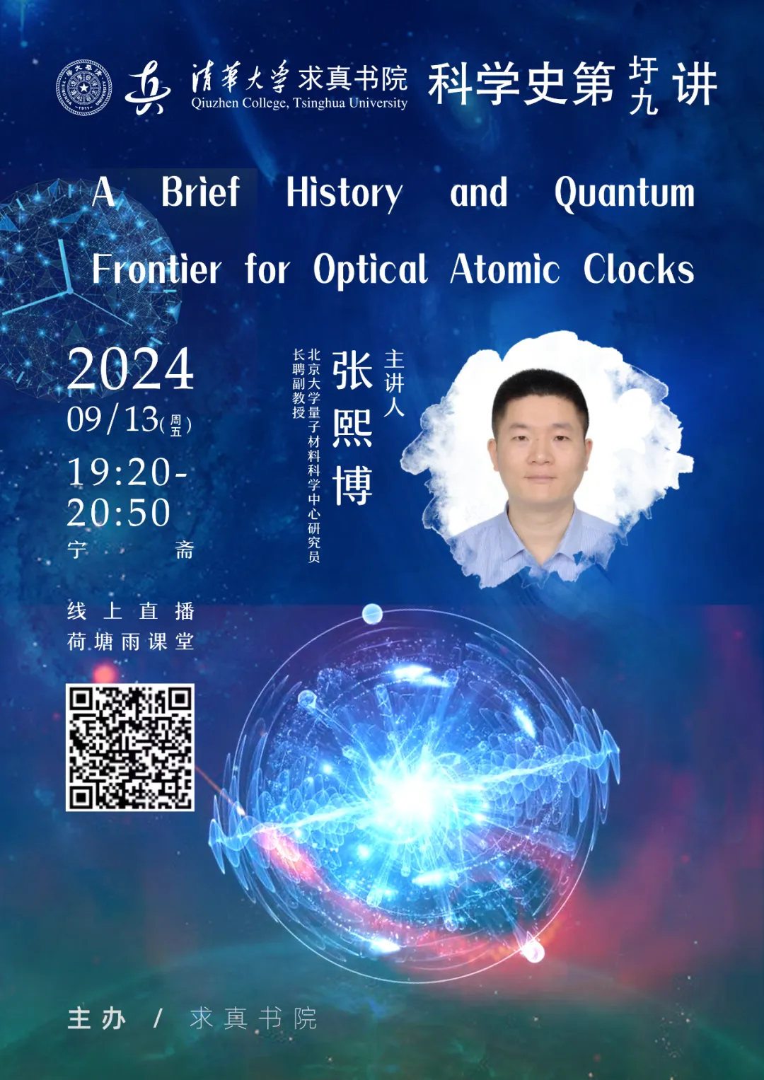 A brief history and quantum frontier for optical atomic clocks主讲人:张熙博时间:9月13日 19:20~20:50地点:宁斋摘要Scaling up the size of coherent quantum systems advances the frontier of precision measurement, and quantum entanglement is poised to make major impact in the near term. Quantum science is thus revolutionizing today’s atomic clocks and metrology, providing opportunities to probe ...