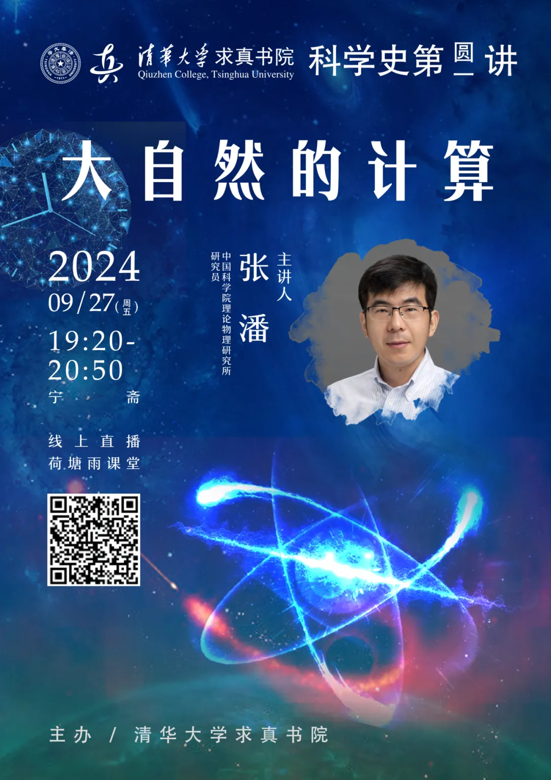 摘要水结冰这种常见的自然现象背后有什么深层次的统计原理?玻尔兹曼机,扩散模型等机器学习模型和物理有什么关系?什么是量子计算,它能帮助我们解决物理问题吗?如果你想了解这些问题的答案以及这些不同科学领域之间的内在联系的话,请来听一听张潘研究员从大自然如何做计算这个视角介绍物理、人工智能、量子计算的历史,交互与共通之处 !讲座内容将以通俗的科普介绍为主,不需要专业的知识作为铺垫,请同学们来讨论吧!主讲...