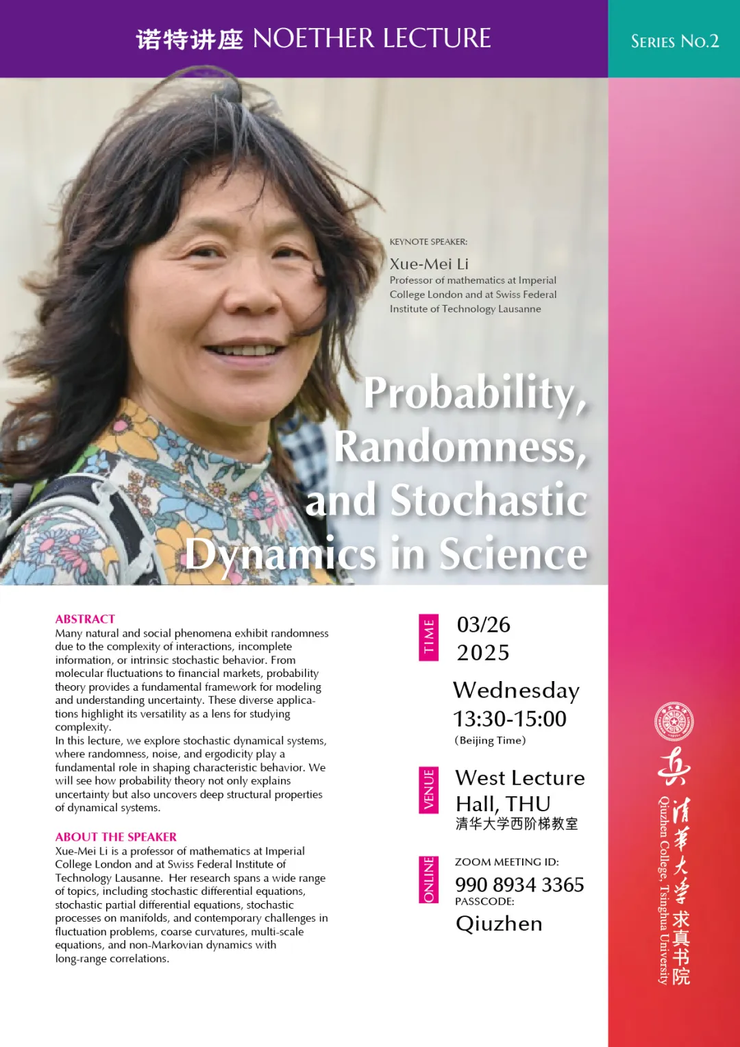 About the SpeakerXue-Mei Li is a professor of mathematics at Imperial College London and at Swiss Federal Institute of Technology Lausanne. Her research spans a wide range of topics, including stochastic differential equations, stochastic partial differential equations, stochastic processes on manifolds, and contemporary challenges in fluctuation problems, coarse curvatures, multi-scale equatio...