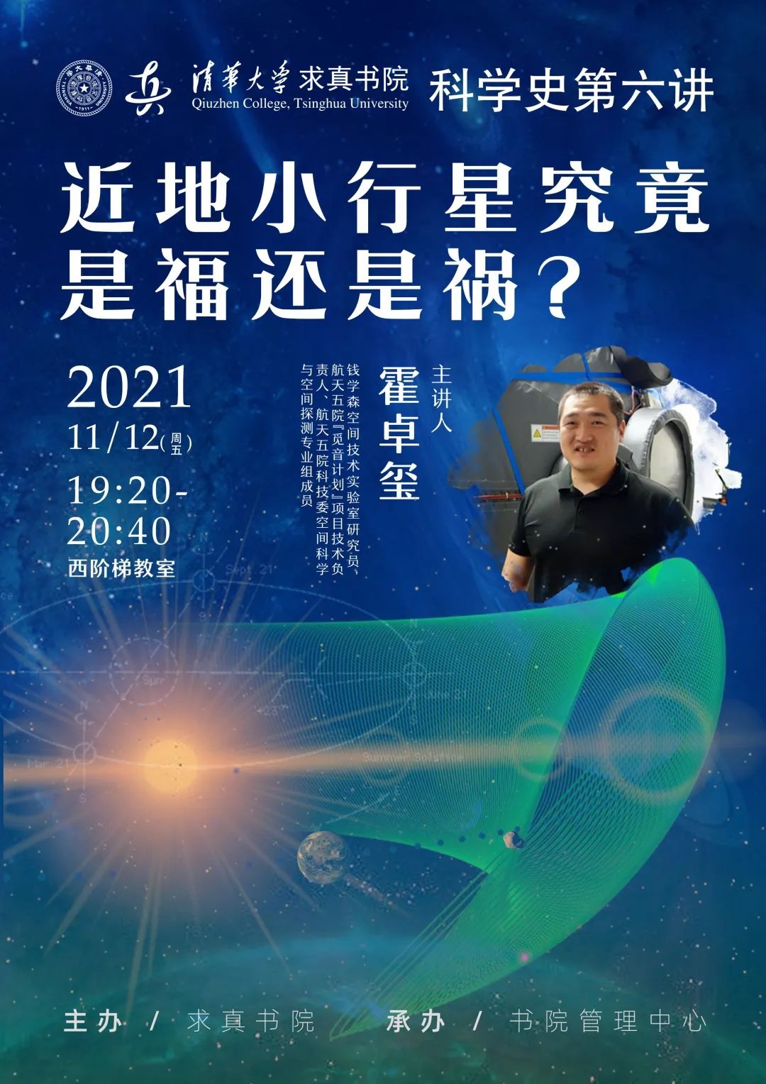 作为太阳系形成与演化过程的“化石”,近地小行星与地球息息相关。为揭示地球宜居环境的形成乃至地球的生命起源提供证据与约束?还是对地球存在潜在的撞击风险?本次讲座霍卓玺老师将带领我们走入宇宙,探索近地小行星的奥秘。