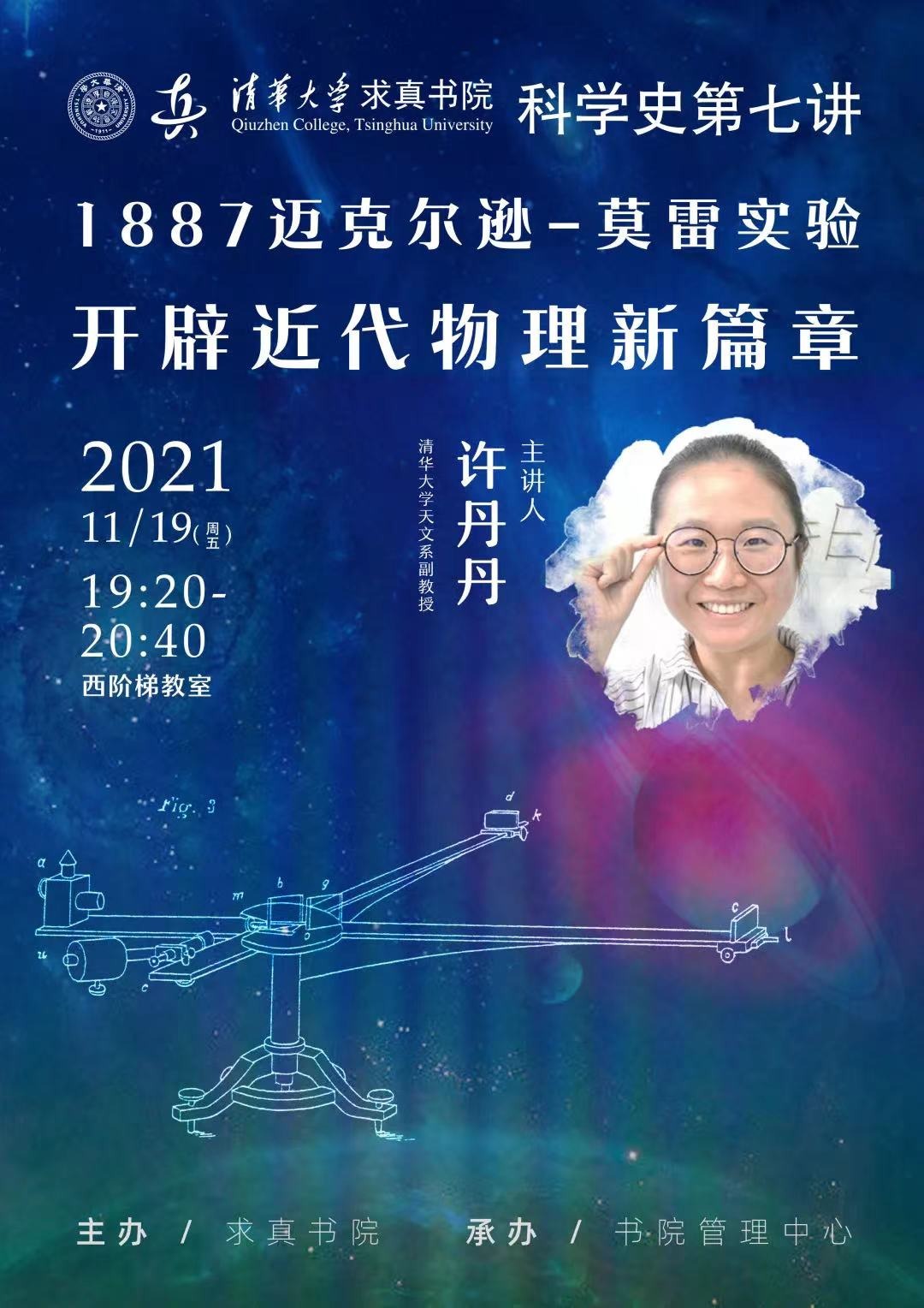 1887年的迈克尔逊-莫雷实验否认了19世纪普遍相信的“以太”的存在,在动摇了经典物理学基础的同时也为狭义相对论奠定了重要的实验基础。本次讲座由许丹丹教授带我们走近1887迈克尔逊-莫雷实验,探索近代物理学的奥秘。