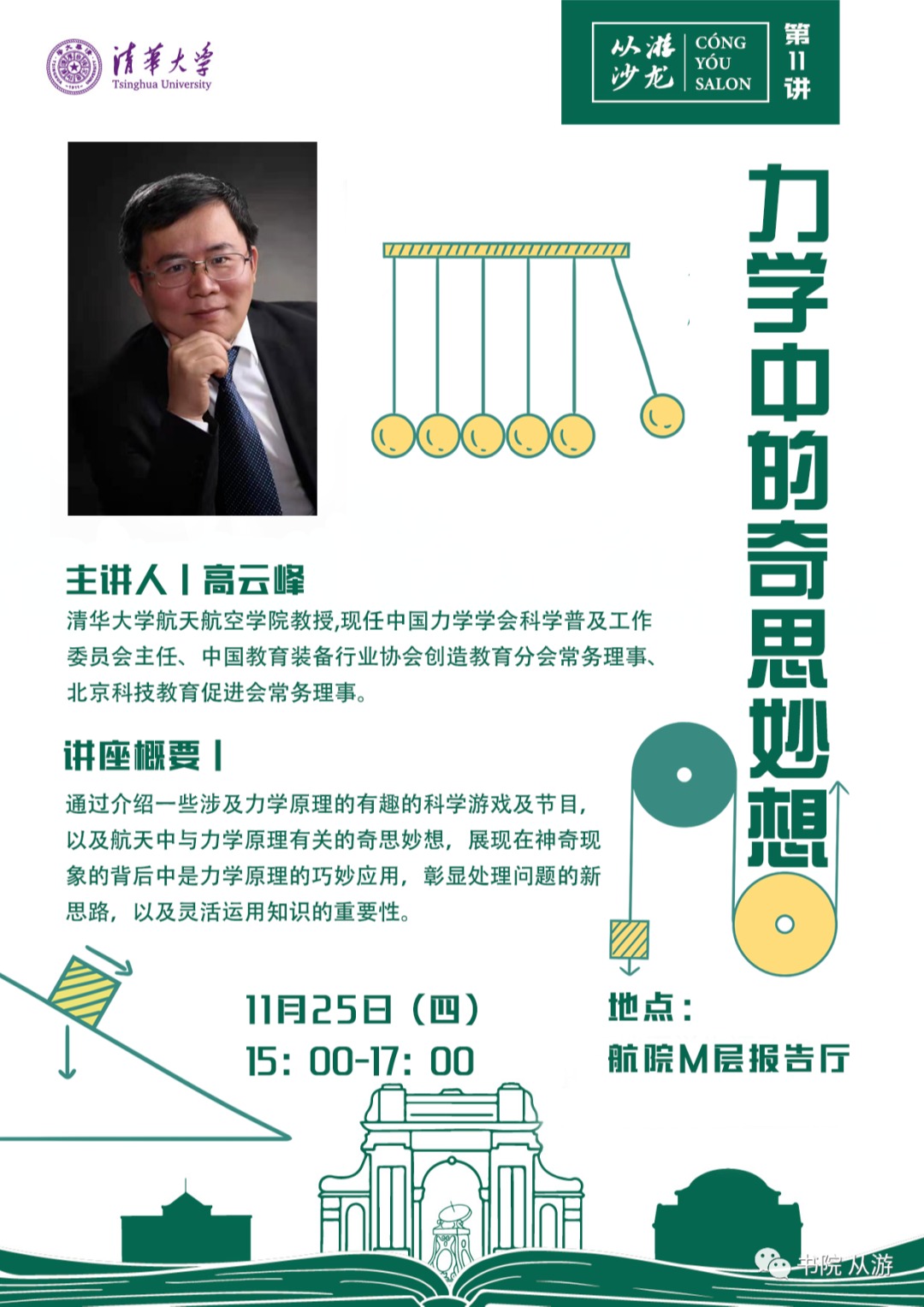 讲座题目:力学中的奇思妙想讲座时间:2021年11月25日 15:00讲座地点:航院M层报告
